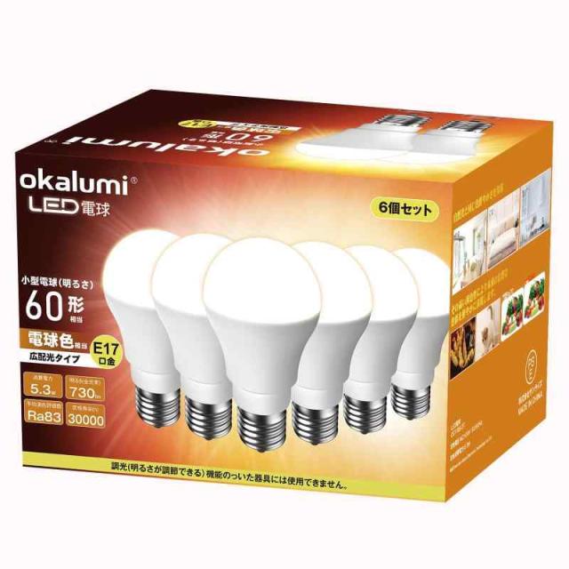 LED電球 E17口金 電球色昼白色昼光色 40W60W相当 断熱材器具対応 ミニクリプトン電球 2個セット6個セット (電球色-60W, 6個セット-調光不可)