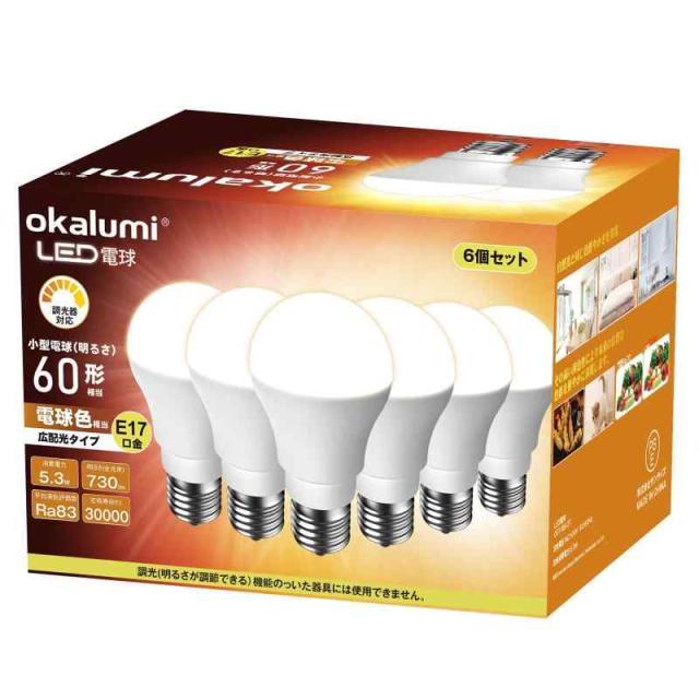 LED電球 E17口金 電球色昼白色昼光色 40W60W相当 断熱材器具対応 ミニクリプトン電球 2個セット6個セット (電球色-60W, 6個セット-調光器対応)