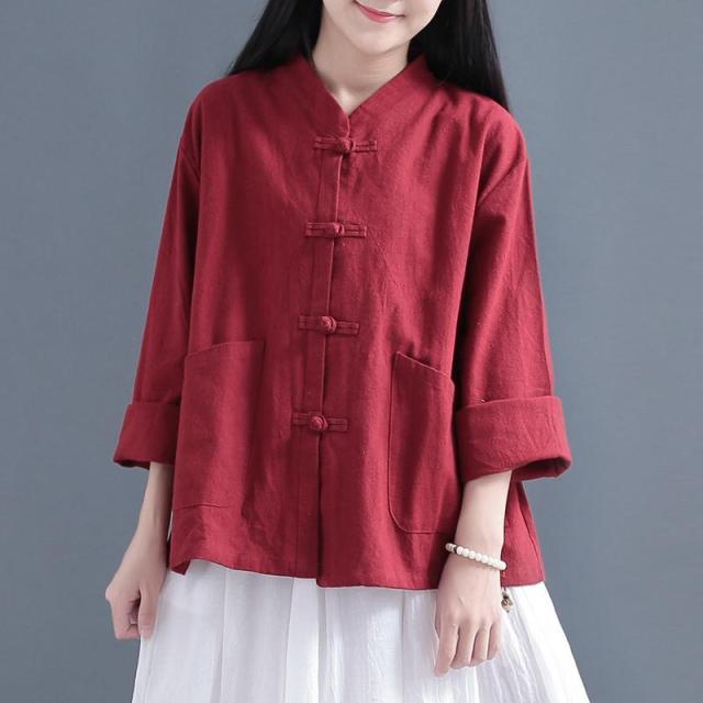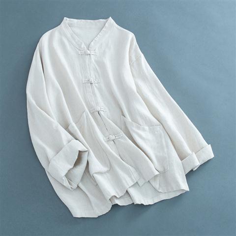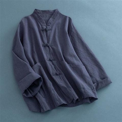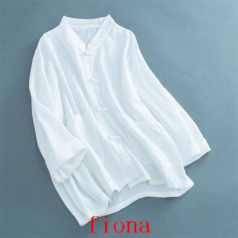 送料無料 シャツ 羽織り レディース トップス ブラウス 七分袖 長そで チャイナボタン 羽織り シャツ カーディガン 薄手 綿混 コットン混 ゆったり 夏