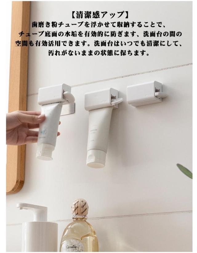 2個入り 多機能 歯磨き粉クリップ 歯磨き粉ホルダー 省スペース チューブ絞り器 穴あけ不要 強力粘着 ぶら下げ式 歯磨き粉ホルダー チューブホルダー チューブローラー 洗面所用 洗顔料 歯磨き粉
