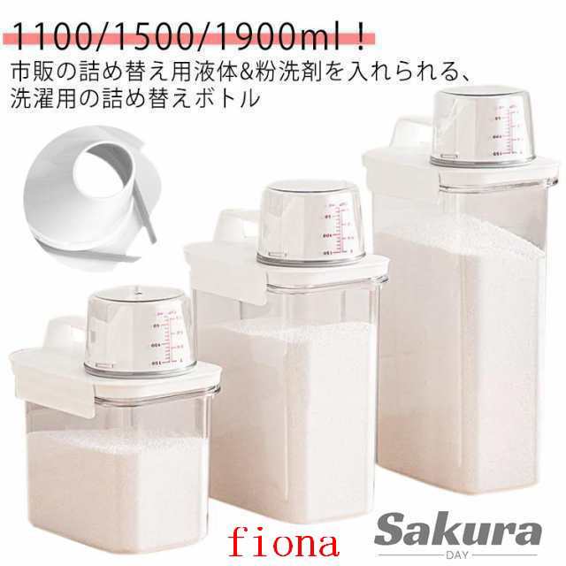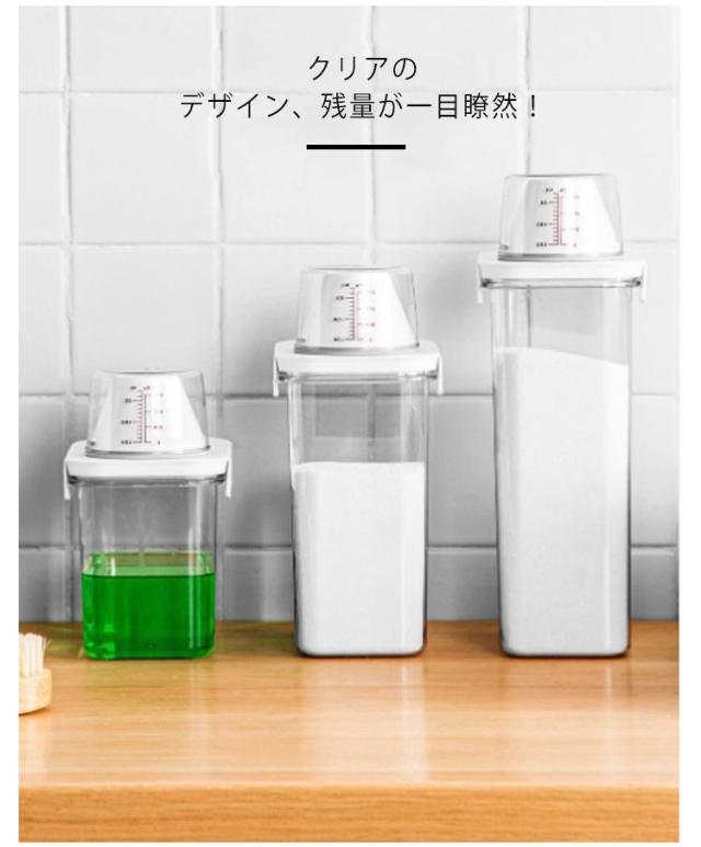 | 1100/1500/1900ml!市販の詰め替え用液体&粉洗剤を入れられる、洗濯用の詰め替えボトル ボトルキャップにはメモリが付いているので簡単に計量できます? 詰め替え時に便利な大口デザインなのもポイント◎ クリアのデザイン、残量が一目瞭然! | |