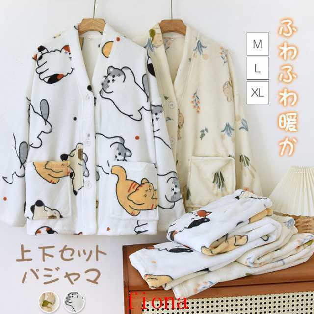 パジャマ ルームウェア 2点セット 上下セット レディース 冬 暖かい 着心地 裏起毛 Vネック 長袖 前開き ロングパンツ セットアップ もこもこ 大人 秋 快適 部屋着 上品 可愛い リス柄 ネコ 猫柄 ナイトウェア 寝巻き 修学 旅行 プレゼント ふわふわ 20代 30代 40代 50代