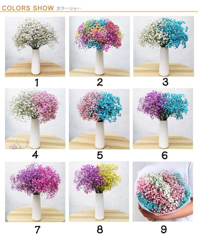 | ミックスカラーのかすみ草の花束です。【単色もあります】【2束セット】 花びらも葉も鮮明な色で、遠目から見れば、まるで生花のように生き生き咲いています。 ご家庭からオフイス、ショップ、レストランの店内装飾等、様々な場所にお洒落な空間を演出、とてもおしゃれな造花です。 ドライフラワーなので、水、肥料やりや世話不要で、同時に害虫のつく心配が要りません。 お気に入りの花瓶やブリキのポットに挿すだけで素敵なインテリアフラワーに。 | |