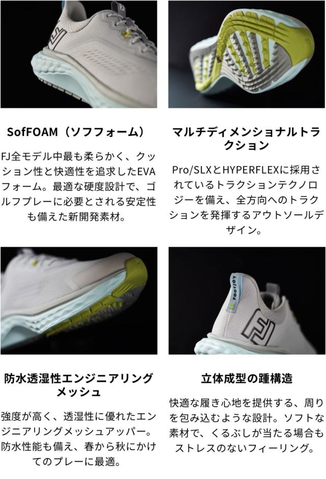 ボリューム感のあるアウトソールからは想像できない軽量性と、ラウンドの疲れを軽減する快適性を追求した最新作。