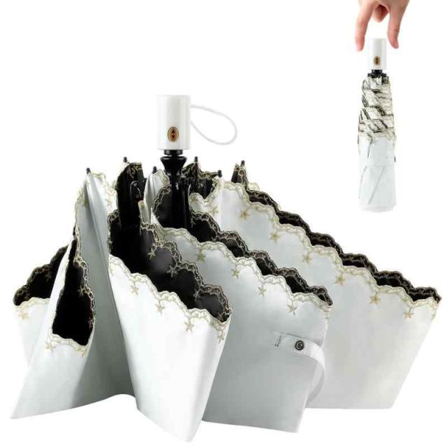 折りたたみ傘 丈夫 軽量 250g 日傘 uvカット 自動開閉 大きい 遮光遮熱 折り畳み傘 女性 晴雨兼用 レディース 紫外線カット 6本骨 耐風撥水 コンパクト 星柄刺繍 母の日プレゼント (ベージュ)