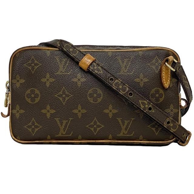 ルイ ヴィトン ショルダーバッグ マルリーバンドリエール f-23200 ブラウン モノグラム M51828 美品 モノグラムキャンバス ヌメ革 中古 SL0090 LOUIS VUITTON クロスボディ 茶色 ミニバッグ ポシェット ファスナー ロゴ 人気 レディース ブランド 本物 鑑定済み