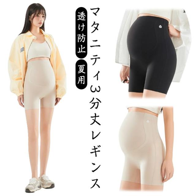 マタニティ スパッツ 3分丈 夏用 レギンス ペチコート ペチパンツ 透け防止 薄手 冷感 ストレッチ ヒップアップ ショートパッツ インナーパンツ 肌着 下着 マタニティウェア 妊娠 黒 ブラック ベージュ