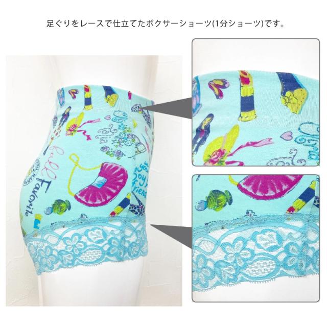 足ぐりをレースで仕立てたボクサーショーツ(1分ショーツ)です。