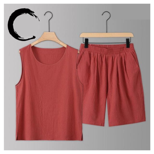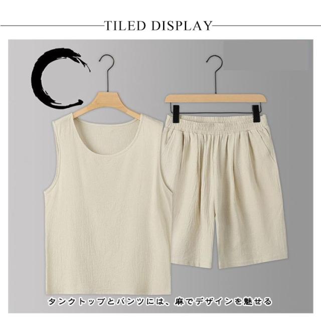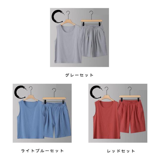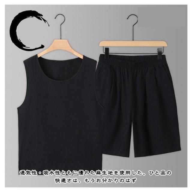 セットアップ メンズ 夏 夏服 春夏 プルオーバー リネンTシャツ ベスト 袖なしtシャツ タンクトップ ショートパンツ イージーショーツ ハーフパンツ 綿麻 オーバーサイズ インナー 薄手 シンプル 通気性よい ゆったり 大きいサイズ M L XL 2XL 3XL 4XL 5XL 送料無料