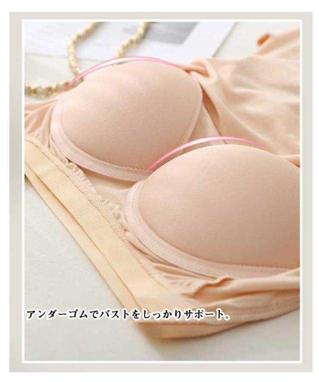 | 心地よく一枚で着れるカップ付カットソー カップが付いているのでブラいらず!ノンワイヤーで楽ちんストレスフリー! 伸縮性抜群でS〜4Lに対応。 素肌に心地よい柔らかストレッチ素材で、サラッとした落ち感が魅力です アンダーゴムでバストをしっかりサポート。 普段使いにも、フィットネスシーンやナイトブラとしてもおすすめです。 | |