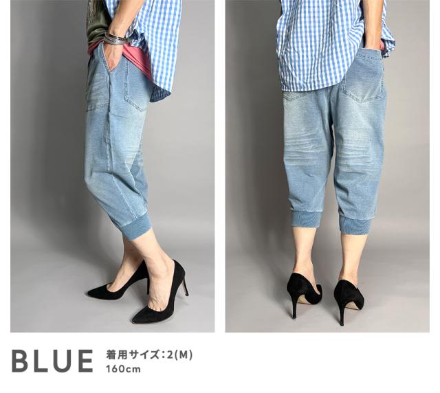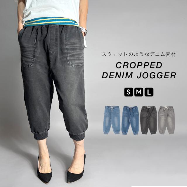 ジョガーパンツ レディース 7分丈 クロップドパンツ デニム スウェットデニム おしゃれ キレイめ アンクルパンツ スリム サルエル カジュアル カットデニム ストレッチ 伸縮 海水浴 ウォーキング 涼しい 涼感 通気性 夏用 春 夏 秋 ゆったり 大きいサイズ 30代 40代 50代