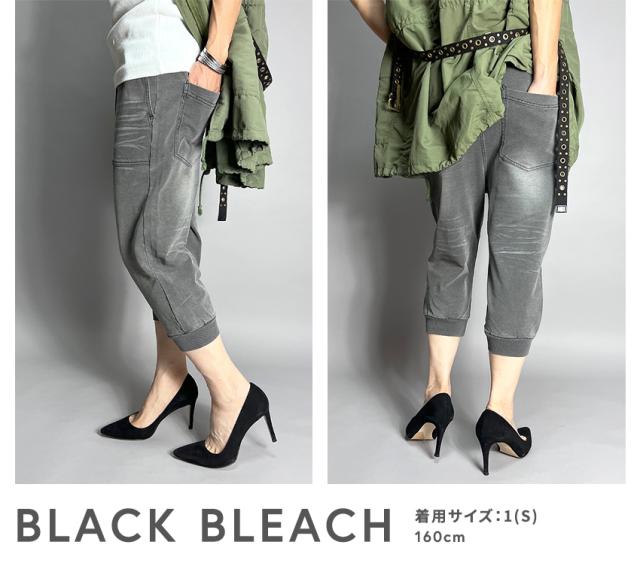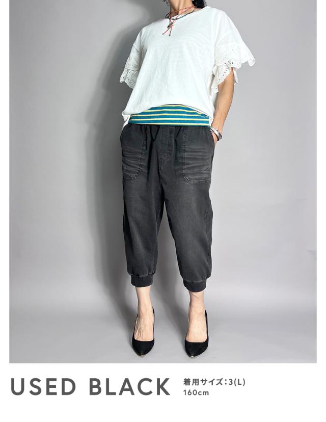 デニムのようでデニムではないカットデニム素材を使用したクロップドジョガーパンツ。