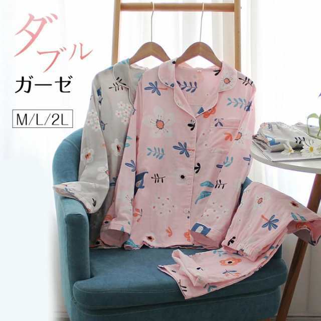 パジャマ レディース ルームウェア レディース 夏 ルームウェア セット レディース ルームウェア レディース 2重ガーゼ パジャマ 綿100% ナイトウェア 長袖 長ズボン 前開き 上下セット ポケット付き 部屋着 敏感肌 通気性がよく蒸れにくい 柔らかいので肌にやさしい