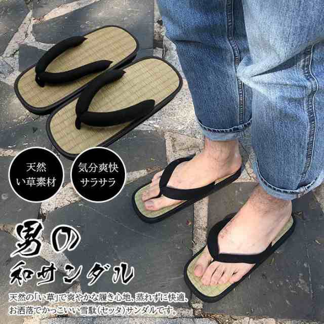 【ポイント10倍!】天然い草素材 気分爽快 サラサラ 鼻緒は痛くない 超軽量 サンダル メンズ 草履 雪駄 裸足で最適 男の和サンダル 和を履く男は格好良い 男女兼用