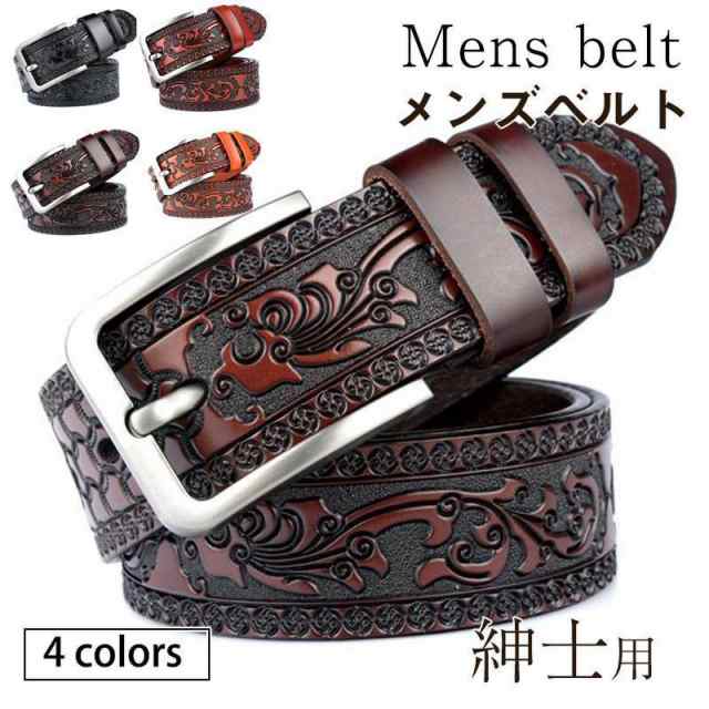【ポイント10倍!】ベルト メンズ レディース 本革 型押し 牛革 バックルベルト 革ベルト レザー カービング ウエスト調整 ウエスタンベルト アメカジ