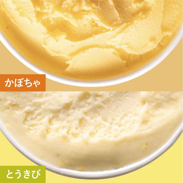<三笠カボチャ>牛乳(北海道産)、生クリーム、グラニュー糖、脱脂濃縮乳、カボチャペースト、水あめ、ゼラチン