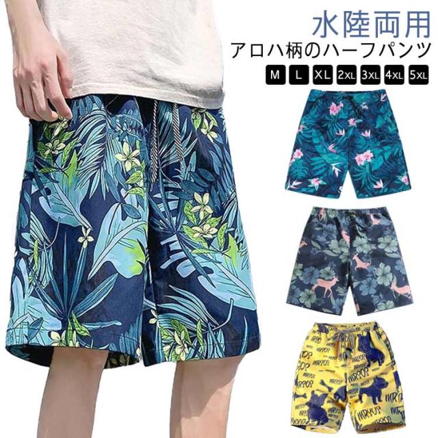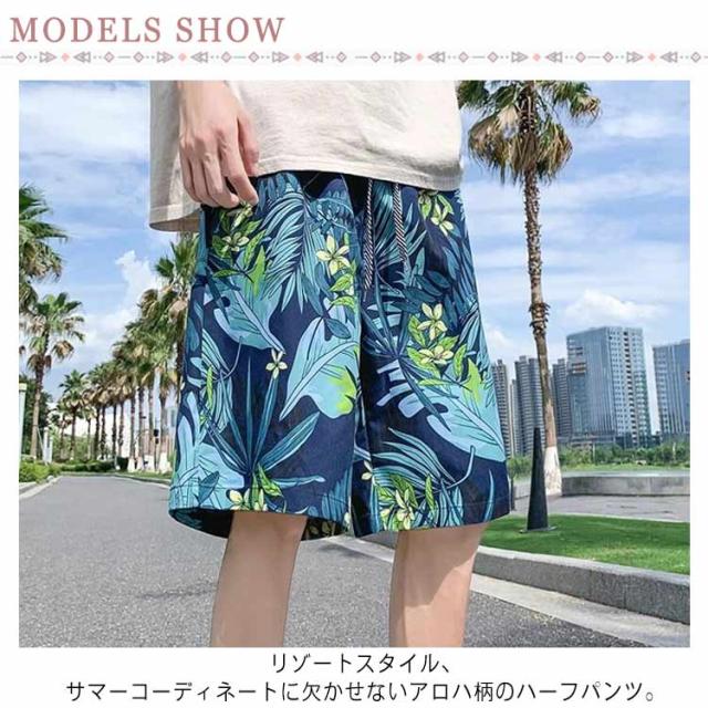 メンズ アロハ ショートパンツ ハーフパンツ ハーフパンツ ショーツ アロハパンツ サマーショーツ 花柄 メンズ 水陸両用 水着 リゾートスタイル リゾート リゾートパンツ アロハハーフパンツ ゆるパン アロハショーツ ゴルフパンツ 春服 夏服