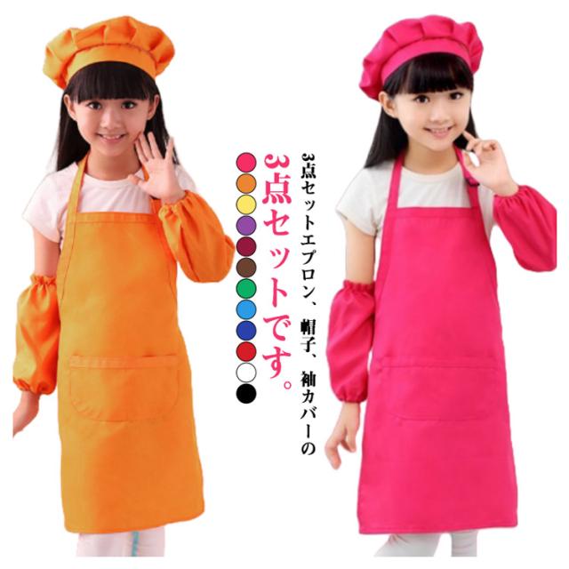 帽子 子ども エプロン 子供 女の子 キッズ 子供 かわいい セット エプロン 袖カバー 小学生 男の子 おしゃれ こども キッズエ プロン 低学年 家庭科 帽子付き 3-6歳