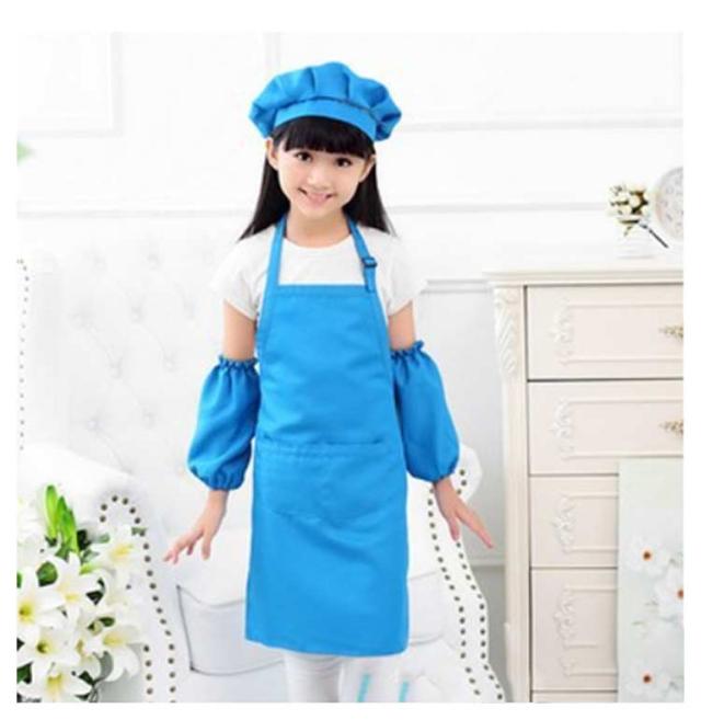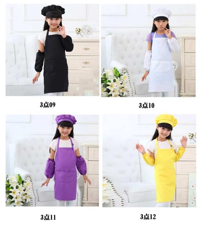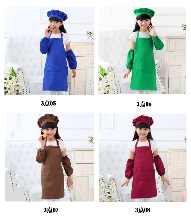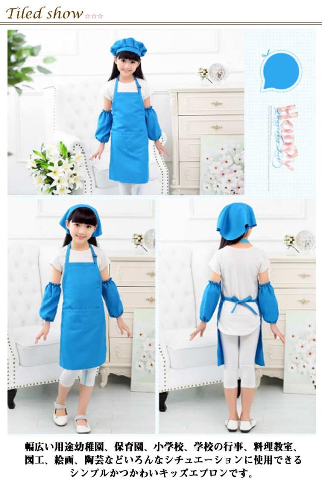 | 3点セットエプロン、帽子、袖カバーの3点セットです。 幅広い用途幼稚園、保育園、小学校、学校の行事、料理教室、図工、絵画、陶芸などいろんなシチュエーションに使用できるシンプルかつかわいキッズエプロンです。 | |