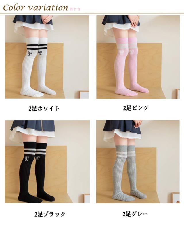 キッズ クリスマス キッズ オーバーニーソックス ニーハイソックス リボン刺繍 2足セット 靴下 子供 グレー 靴下 ホワイト ブラック 黒 発表会 ハイソックス 白 ひざ上 入学式 卒業式 通学 ピンク 2足セット 秋 春夏 膝上 子供用 定番 女の子 レッグウェア
