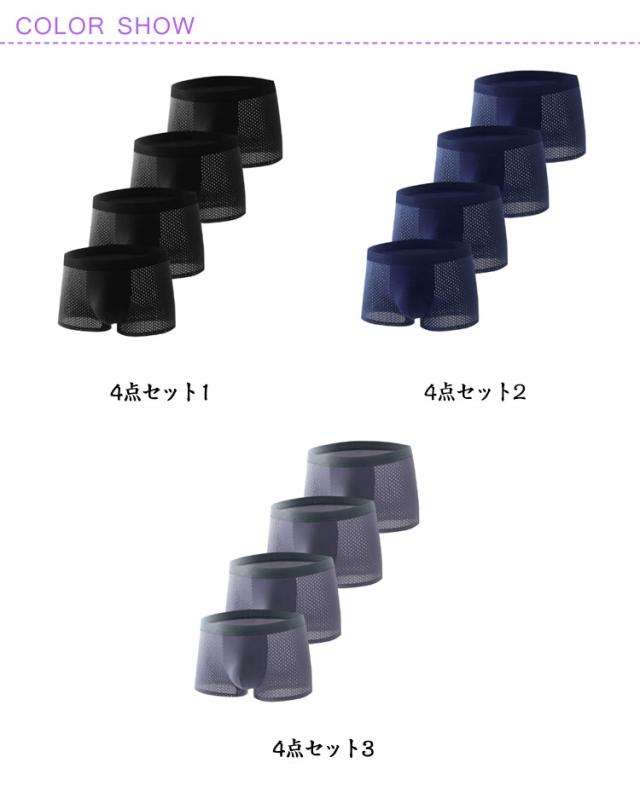 抗菌 下着 ボクサーパンツ メッシュ ショーツ 4枚セット 大きいサイズ まとめ買い 肌着 ボクサーショーツ ボクサーブリーフ セット L 男性用 パンツ 通気性 蒸れない 紳士 ボクサーパンツ ギフト プレゼント 旦那 主人 兄弟 彼氏 メンズ XL 2XL 3XL