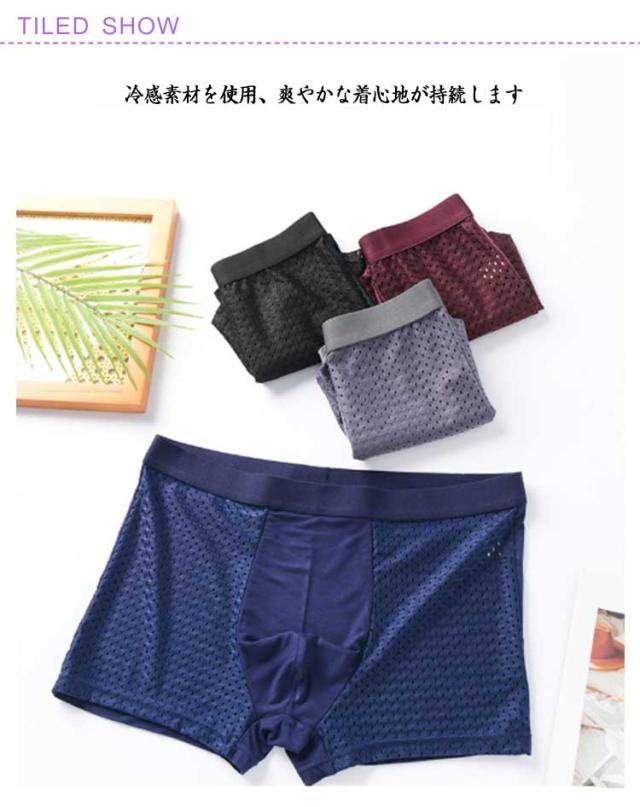 | メッシュボクサーパンツ4点セットです! メッシュデザインで発汗時でも素肌に生地を密着させず、ベタつき感を軽減。 冷感素材を使用、爽やかな着心地が持続します。 縫い目が少ないため、アウターに響きにくい。 | |