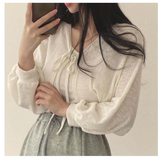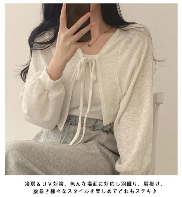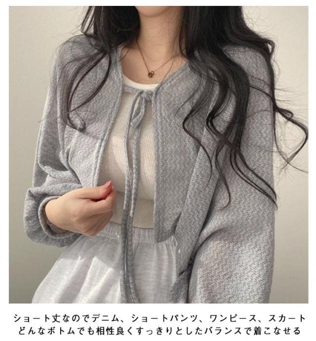 カーディガン 日焼け防止 サマーカーディガン 夏 薄手 レディース ショート丈 アウター UVカット パフスリーブ 冷房対策 夏服 カーディガン 長袖 夏用 通勤通学