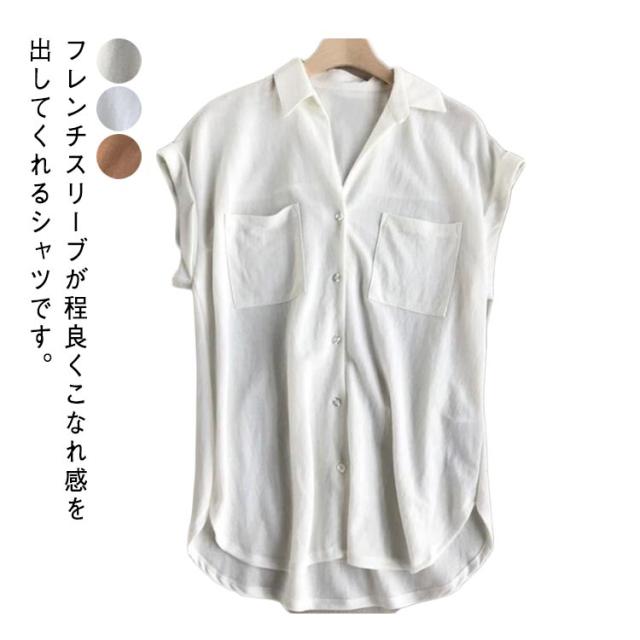 シャツ 白シャツ レディース 白シャツ フレンチスリーブ ブラウス 通勤 夏 春 フレンチ 無地 カジュアル シャツ シャツ ゆったり 体型カバー 夏 上品 涼しい 通気性 軽い 薄手 きれいめ おしゃれ