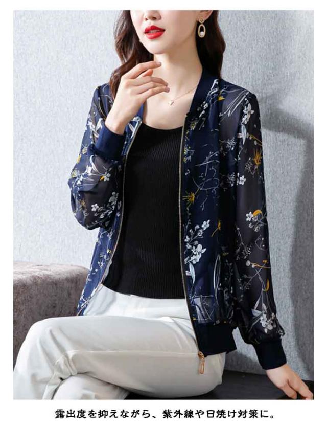 総柄 薄手 羽織 ボタニカル ジャケット ジャンパー 夏ジャケット シアーブルゾン ライトアウター 長袖 総柄 涼しい 軽い カーディガン トップス 冷房対策 UVケア 花柄 露出度調整