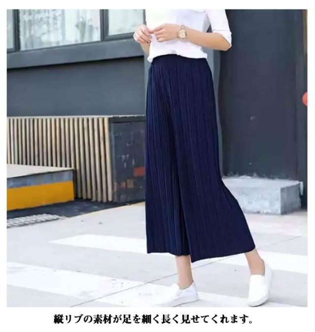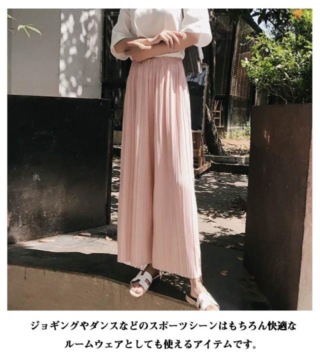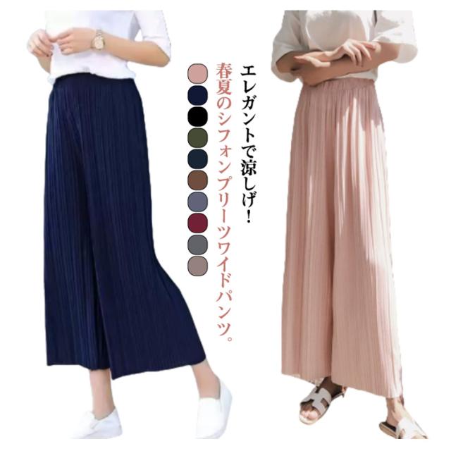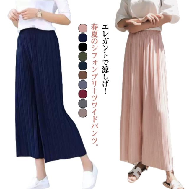 フレア ワイドパンツ おしゃれ ゆったり 春夏 低身長 シフォン プリーツ 九分丈 涼しい ガウチョパンツ プリーツパンツ きれいめ かわいい ワイドパンツ 大きいサイズ ボトムス リラックスパンツ ロングパンツ ウエストゴム