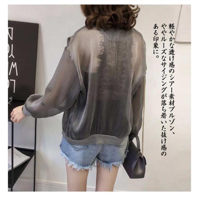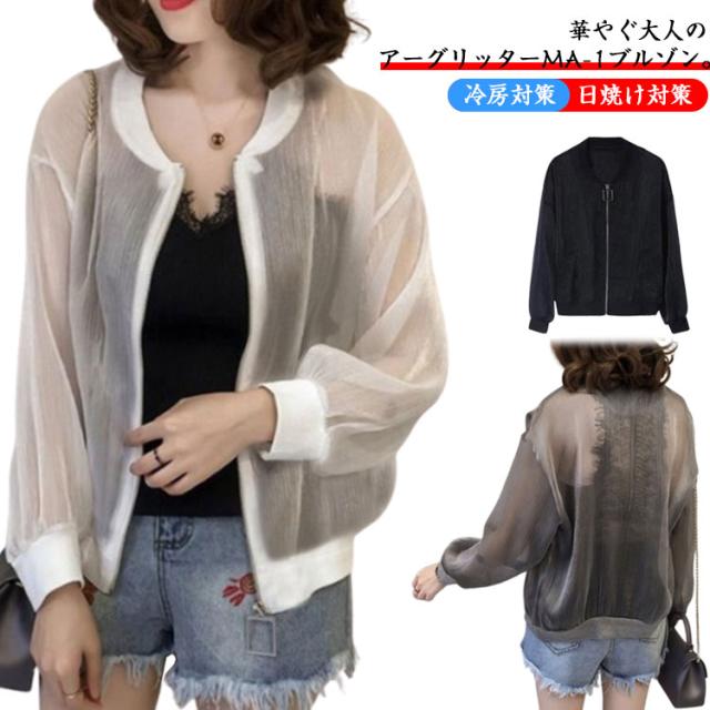 透け感 夏服 ブルゾン シアー シアー ジャケット レディース 光沢 長袖 シアー アウター シアーZIPブルゾン オーガンジー ジップアップ パーカー 羽織 冷房対策 日焼け対策