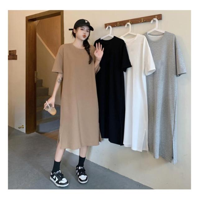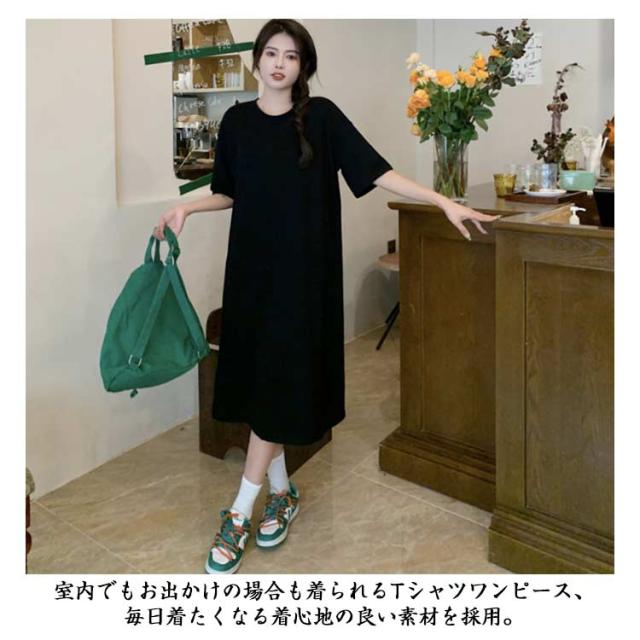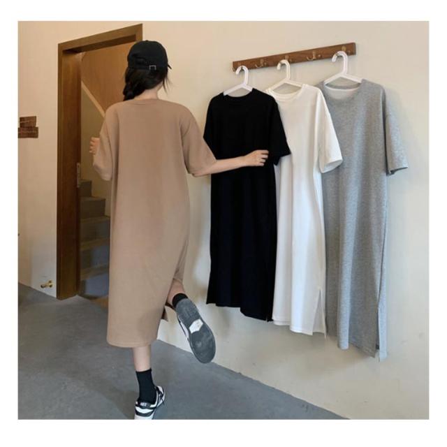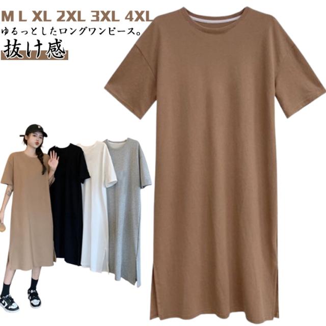 夏 スリット入り 体型カバー Tシャツワンピース tシャツ ワンピース 半袖 Tシャツワンピース 大きいサイズ 部屋着 春 抜け感 Tシャツワンピ ロングワンピース 夏 ルームウェア マキシ丈