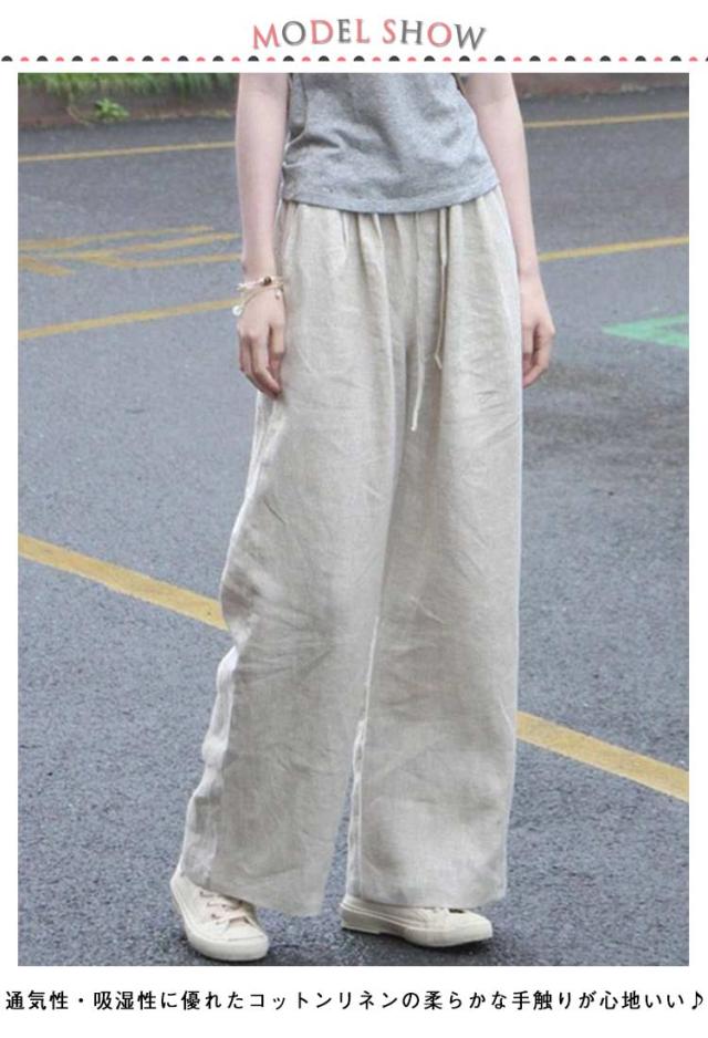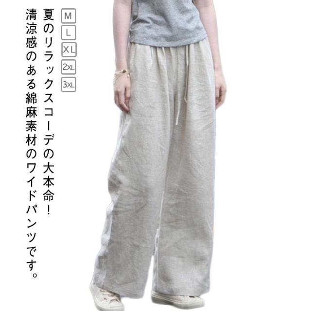 ゆったり きれいめ 綿麻 ガウチョパンツ ワイド 吸汗 麻 イージーパンツ ワイドパンツ パンツ 綿麻風 リネン風 スカーチョ スカンツ ウェストゴム 体型カバー 通気 綿麻 速乾 女性 リラックス きれいめ 春 夏 大きいサイズ 通勤