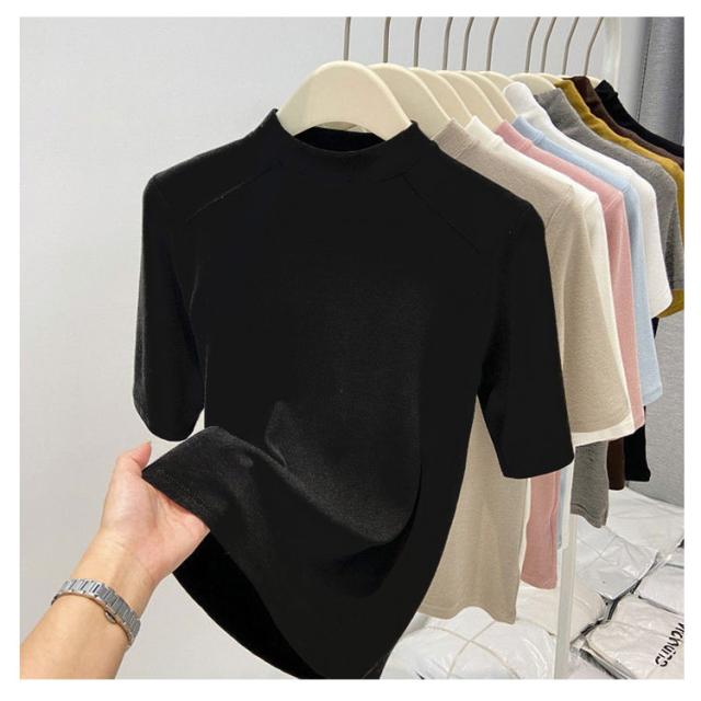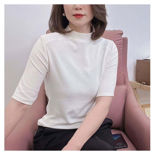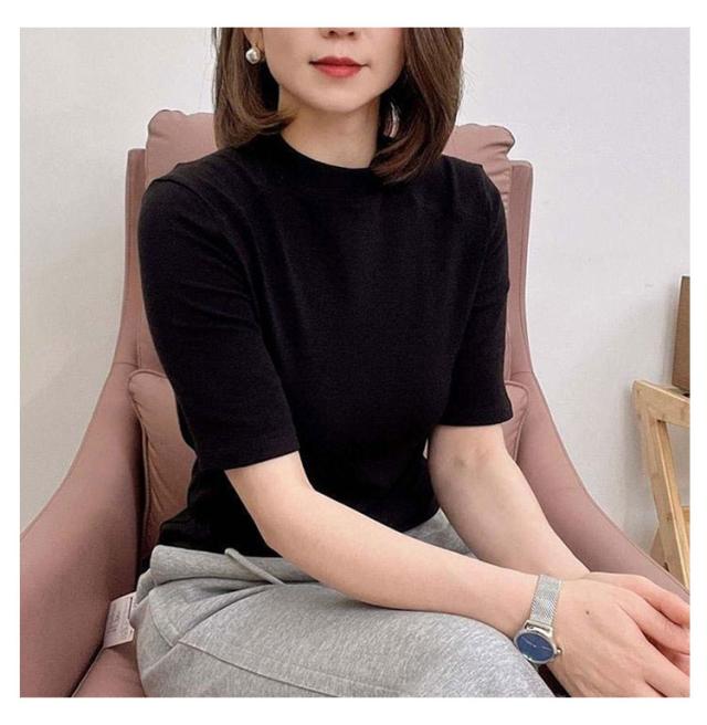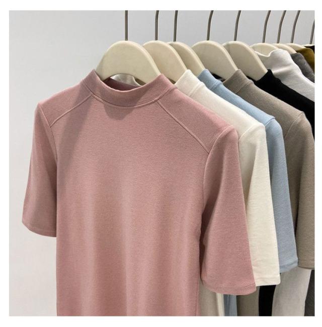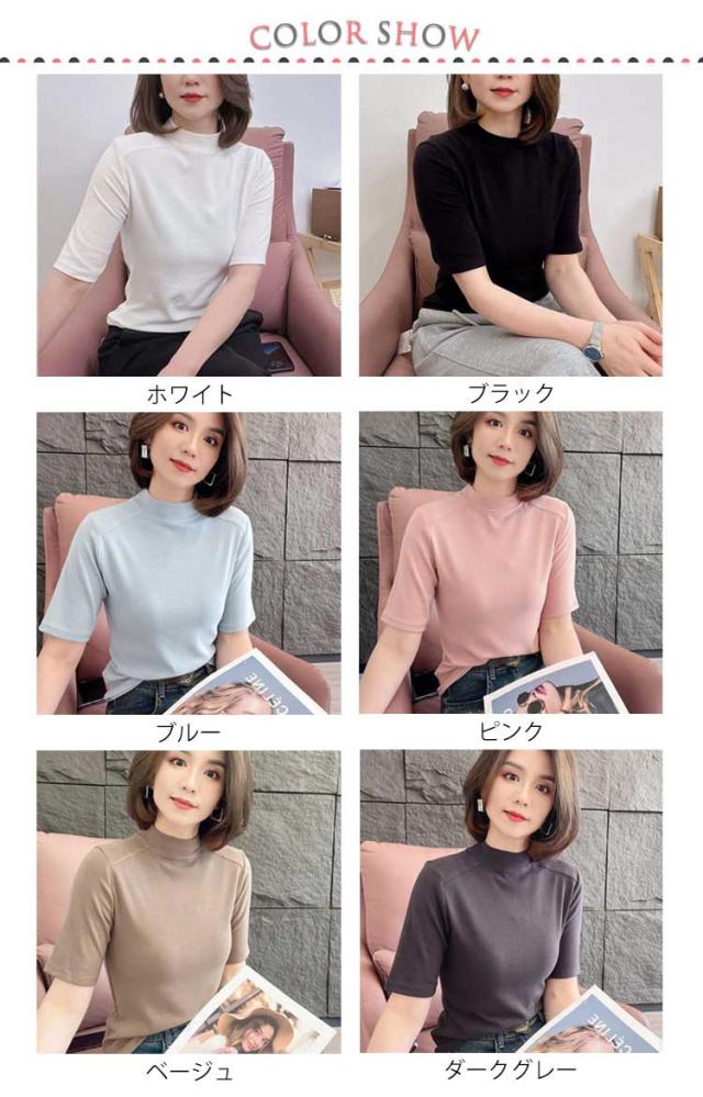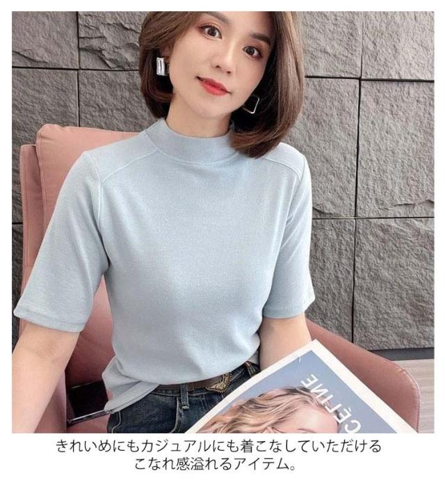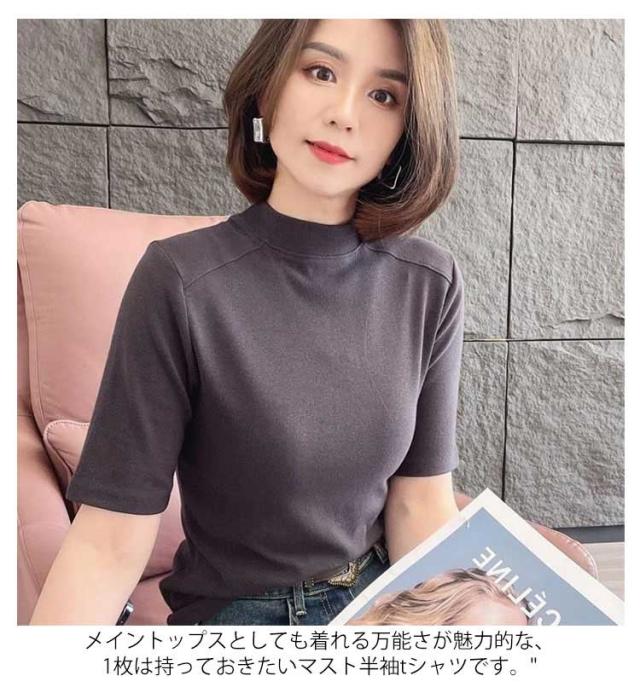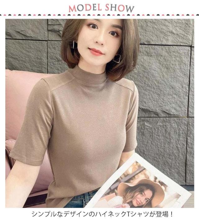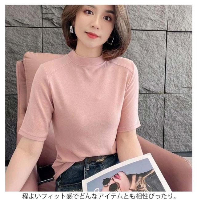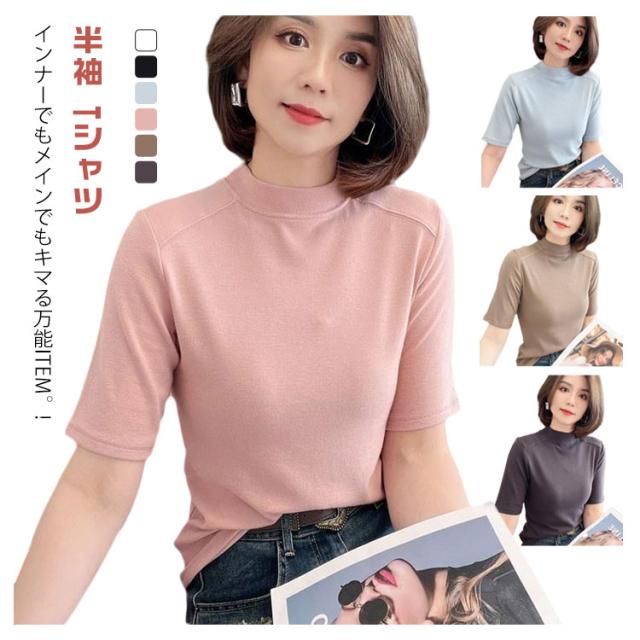 Tシャツ カットソー インナー Tシャツ Tシャツ 無地シャツ 半袖 プチハイネック ハイネックシャツ トップス スリム インナー プルオーバー 夏 大人可愛い おしゃれ 定番 カジュアル キレイめ 通勤 ストレッチ