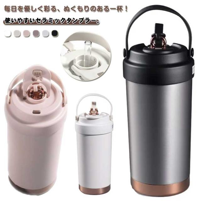 保冷 タンブラー 直飲み 500ML 水筒 コップ 蓋付き セラミックコーティング 水筒 マグボトル 保温 保冷 ブラック 真空タンブラー 保温 無地 ストロー付き シンプル おしゃれ 持ち運び マイボトル マグ ボトル ホワイト ピンク セラミック コーヒー