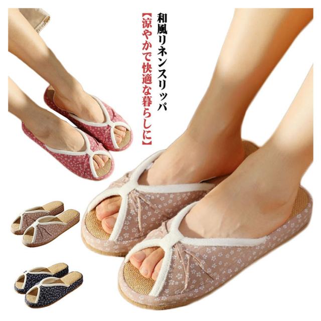 前あき 春夏スリッパ 花柄 リネンスリッパ リネン リネンスリッパ レディース 麻 おしゃれ かわいい ルームスリッパ ルームサンダル 蒸れない 室内履き 業務用 来客用 新生活 ギフト