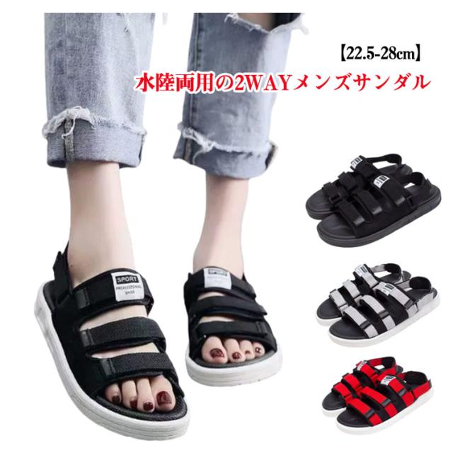 | 【22.5-28cm】水陸両用の2WAYメンズサンダル。 簡単に取り出し可能なデザインは今年トレンド。 マジックテープ式で足の形に合わせて簡単に調整でき、カカトベルトが取り出し可能なスリッパです。 アッパーには快適で通気性の良いストレッチ素材を採用し、柔らかくお手入れが簡単で、足を覆わずに歩くと通気性があります。 海や山などのアウトドアも安心して使えるよう、靴底は摩擦にも強い素材でしっかりとした滑り止め加工を施しています。 | |
