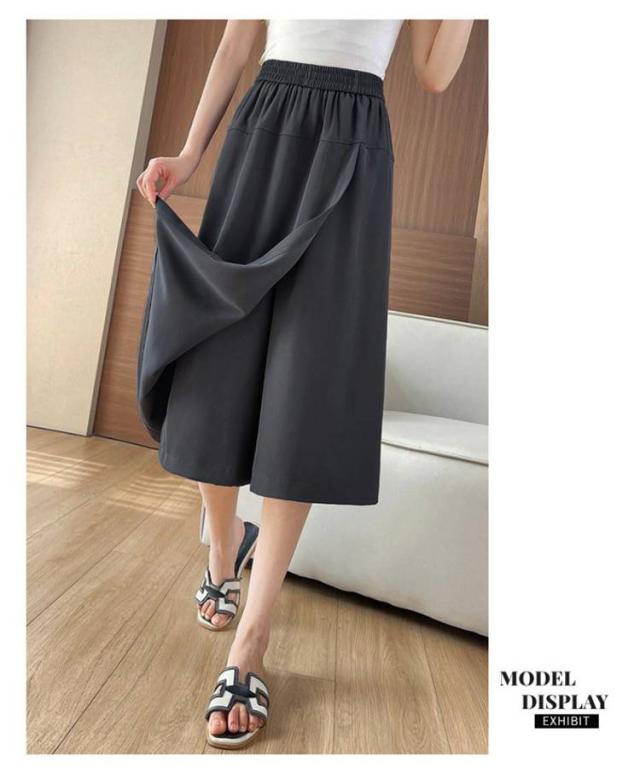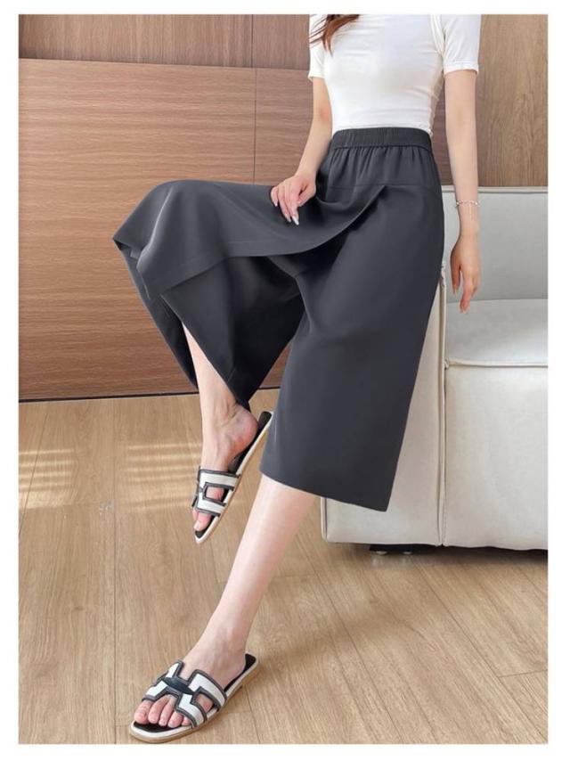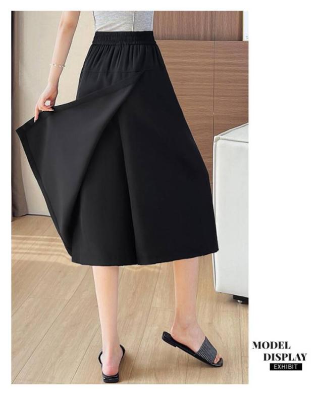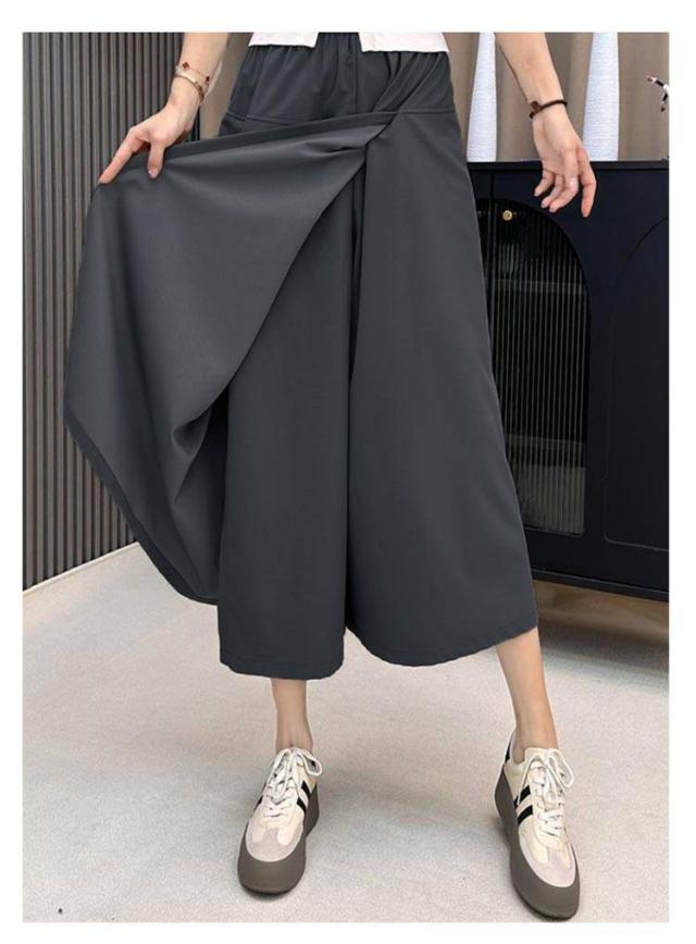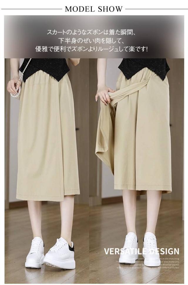 アイスシルク スカートパンツ 8分丈パンツ レディース ボトムス 無地 冷感パンツ キュロット 薄手 ガウチョパンツ ワイドパンツ フレアパンツ ウエストゴム 体型カバー ワイドパンツ 大きいサイズ きれいめ 通勤 春夏 カジュアル