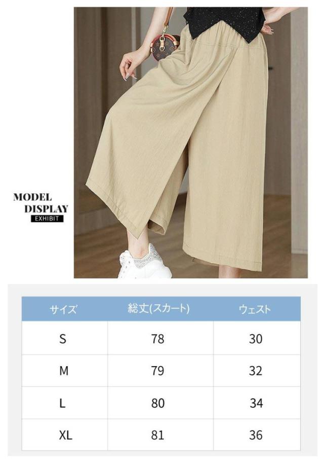 | スカートとパンツの両方の特徴を持つ、とてもスカートらしいワイドパンツです。 スカートのようなズボンは着た瞬間、下半身のぜい肉を隠して、優雅で便利でズボンよりルージュして楽です! 快適で涼しくい冷感生地、通気性が良く、全然ムレない、夏を涼しく快適に過ごしましょう! 体型を美しく演出する動きやすく、快適な履き心地を実現。 ウエストにはゴム入りで、窮屈感なくてお腹の肉を隠すこどができます。 合わせるトップスによってキレイめからカジュアルまで 幅広く合わせていただけます。 | |