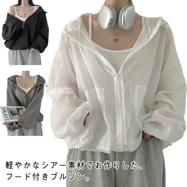 レディース シアー シースルー シアー 夏 パーカー 大きいサイズ 薄手 軽量 ジップパーカー 紫外線対策 シアーアウター シアーブルゾン ライトアウター ゆったり 冷房対策 透ける 涼しい 夏物 軽い 薄手