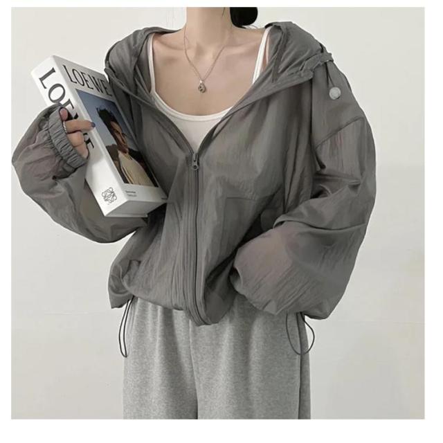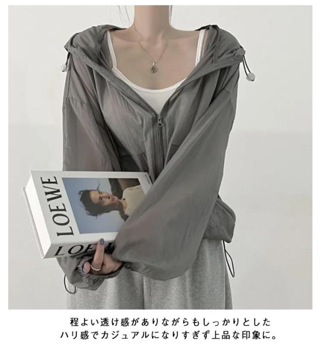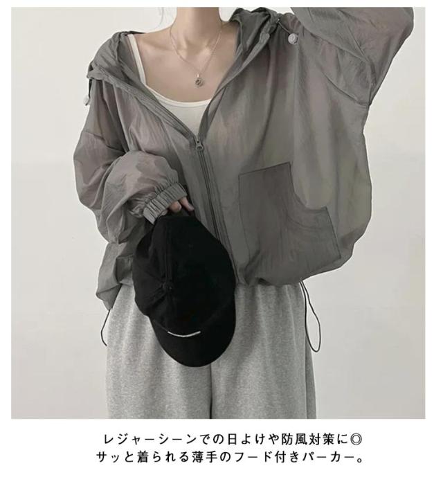 | 軽やかなシアー素材でお作りした、フード付きブルゾン。 羽織ってバッチリ◎紫外線対策!トレンド感たっぶりの! サッと羽織って様になるショート丈で、ゆったりワイドな身幅スタイリッシュに見せてくれるシルエットです。 程よい透け感がありながらもしっかりとしたハリ感でカジュアルになりすぎず上品な印象に。 レジャーシーンでの日よけや防風対策に◎サッと着られる薄手のフード付きパーカー。 薄手でさらっと羽織れる♪優しい透け感のシアー&ぽわんと丸みのあるシルエットで女性らしくニュアンス感のある着こなしに。 | |