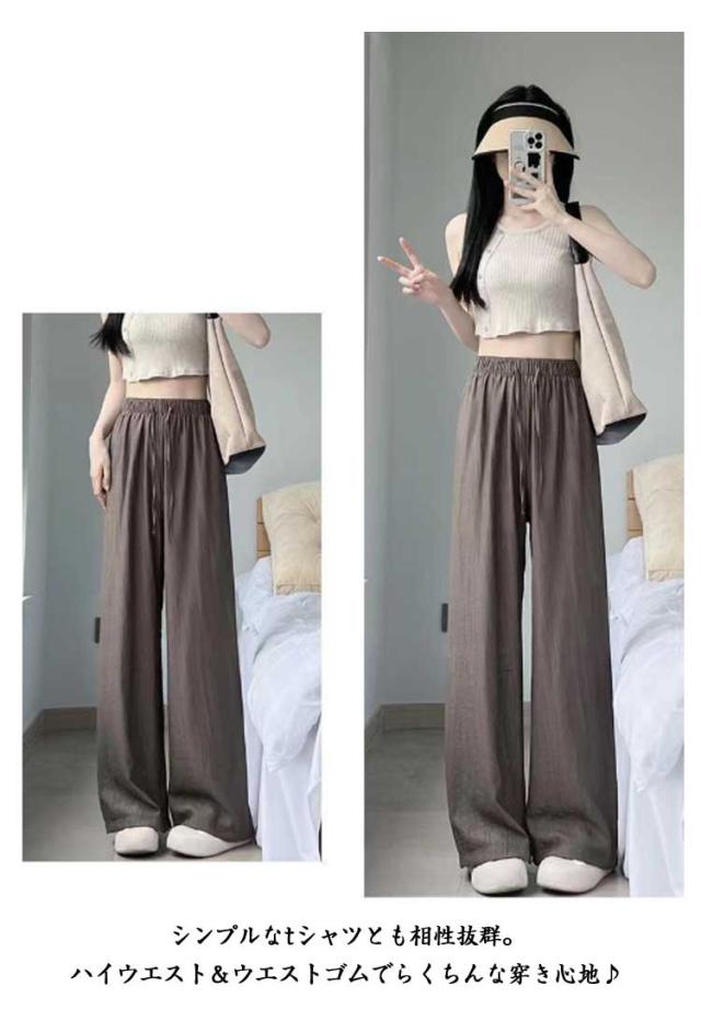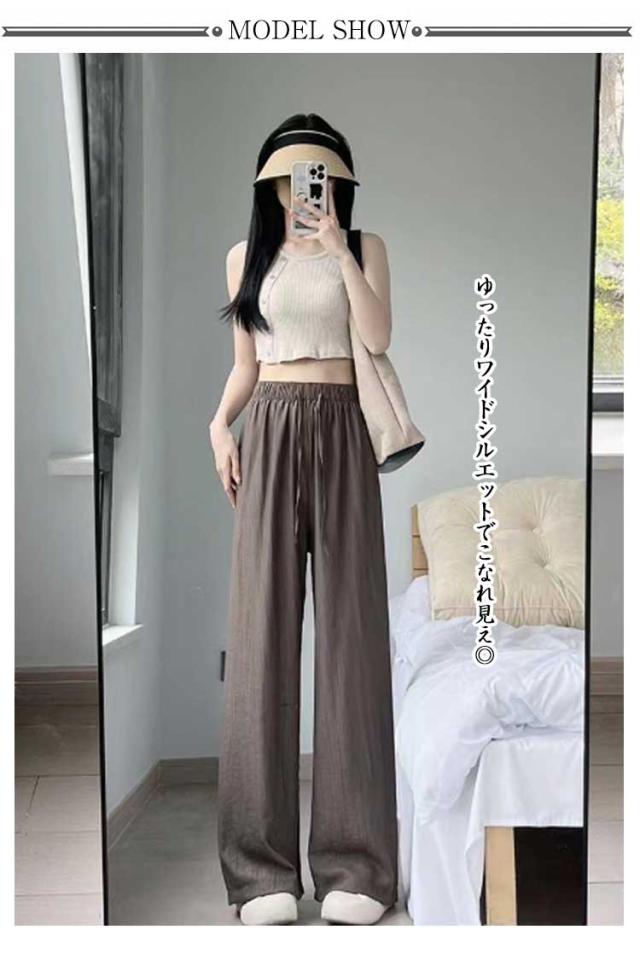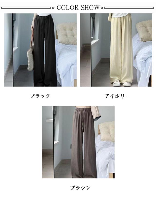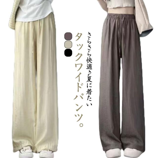 ロングパンツ レディース 薄手 ワイドパンツ ガウチョパンツ イージーパンツ ひんやり 涼しい ボトムス ズボン UVカット さらさら ワイド ガウチョ シワ加工 ワイドパンツ 長ズボン リラックス ウエストゴム ゆったり 体型カバー