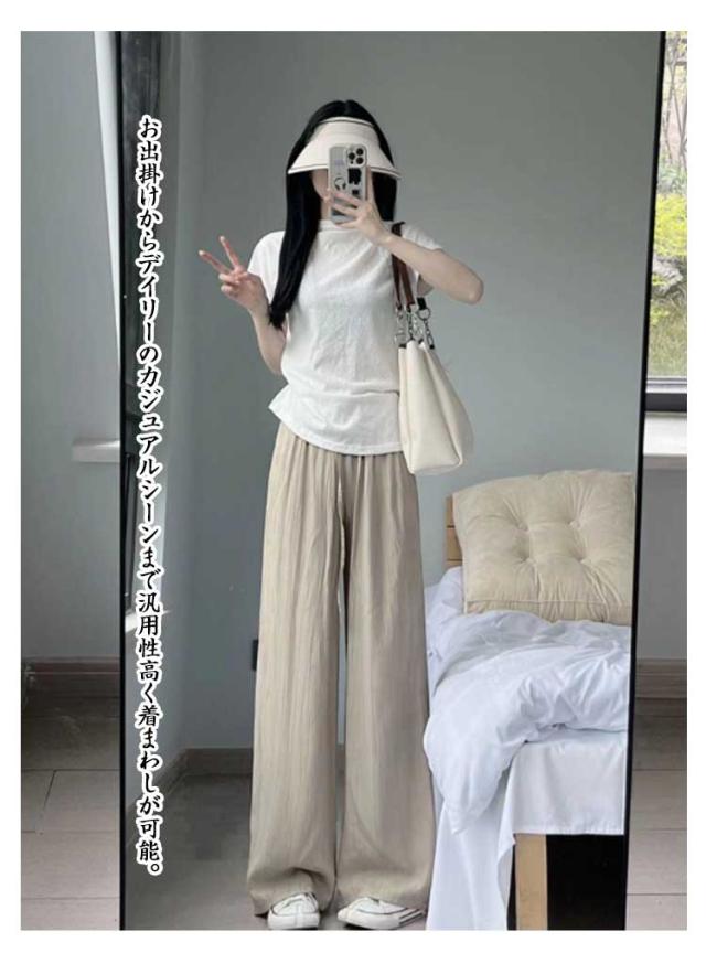 | さらさら快適♪夏に着たいタックワイドパンツ。 ゆったりワイドシルエットでこなれ見え◎ シンプルなtシャツとも相性抜群。 ハイウエスト&ウエストゴムでらくちんな穿き心地♪ お出掛けからデイリーのカジュアルシーンまで汎用性高く着まわしが可能。 | |
