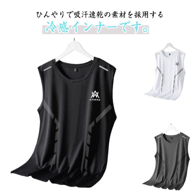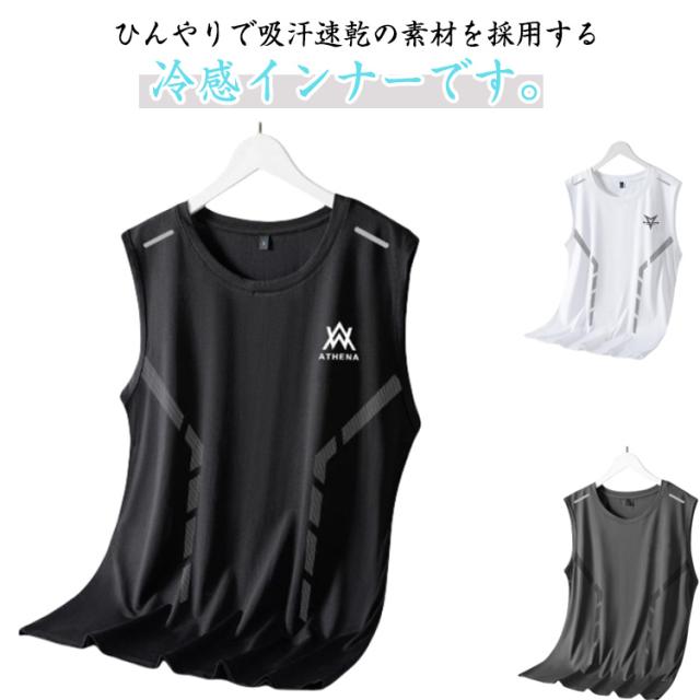 涼しい メンズ 夏用 冷感 インナーシャツ ひんやり トップス アンダーウェア 冷感 夏用 接触冷感 シームレス スポーツ アイスシルク 夏物 tシャツ ノースリーブ 運動着 トレーニング 部屋着 バスケ スポーティ
