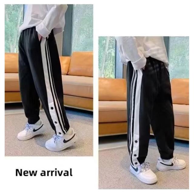 バスケットボールパンツ ジュニア 裾ボタン ジャージパンツ バスケパンツ バスケットボール バスケットボールパンツ 練習用パンツ サイドライン スナップボタン 長ズボン ロングパンツ バスケパンツ 下
