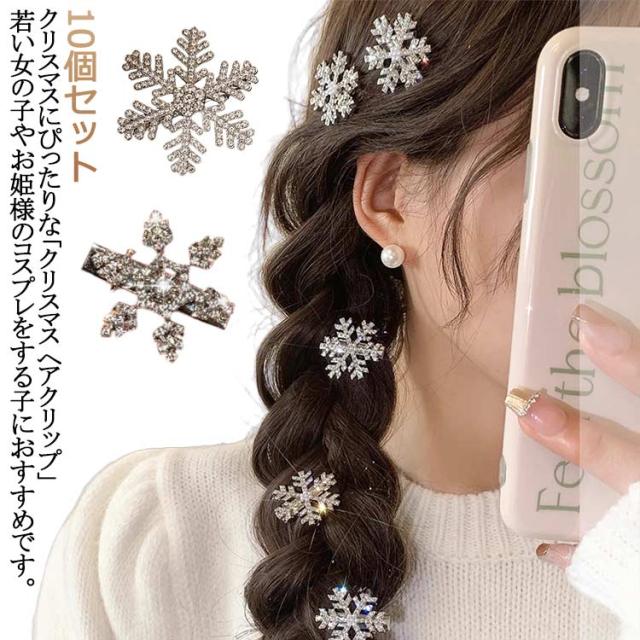 ヘアーアクセサリー ヘアクリップ 雪の結晶 サイド 雪花 クリスマス スノーフレーク クリスマス 10個セット ラインストーン 髪飾り クリスマスアクセサリー キラキラ ヘアクリップ 髪飾り レディース 10個セット 髪飾り 前髪 ガールズ 女の子 子供 こども