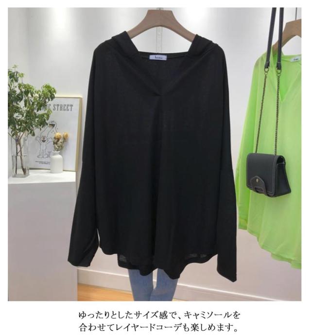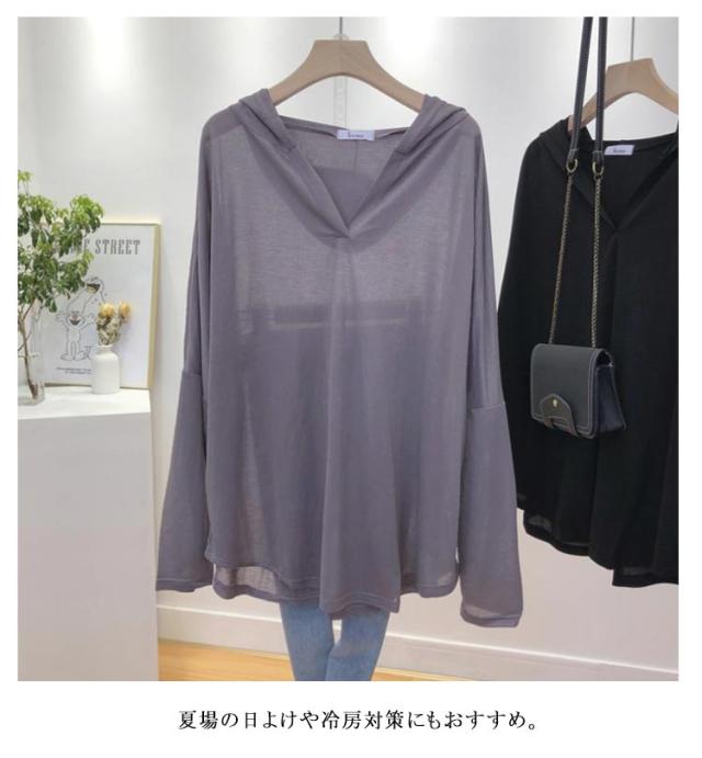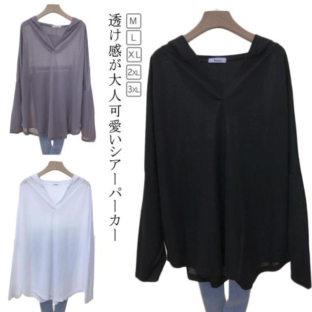 UVカットパーカー シアーパーカー 涼しい 透け感 薄手 プルオーバー 長袖 レディース おしゃれ 長袖パーカー 軽い シースルー 春 夏 日焼け対策 春 Vネック ゆったり 体型カバー オーバーサイズ シアートップス 冷房対策 カジュアル 大きいサイズ 着?せ 送料無料