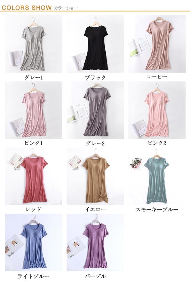 ルームウェア ワンピース レディースパジャマ カップ付きパジャマ ナイトウェア 薄手 部屋着 夏用 通気性抜群 胸パッド付き 半袖ワンピース カップ付き 柔らか ルームウェア ゆったり 大きいサイズ 体型カバー ノーブラOK