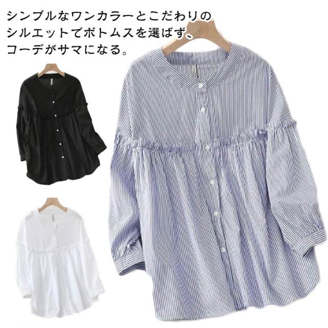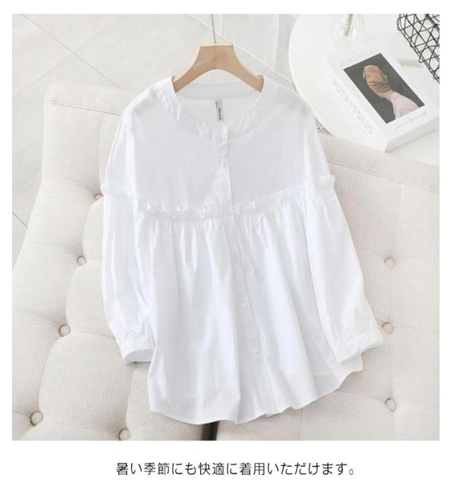 森ガール シャツブラウス シャツ 切り替え 森ガール 体型カバー 無地 シャツ 送料無料 送料無料 春夏 ラウンドネック レディース ゆったり トップス 大きいサイズ フェミニン 長袖 30代 40代 50代 涼しい