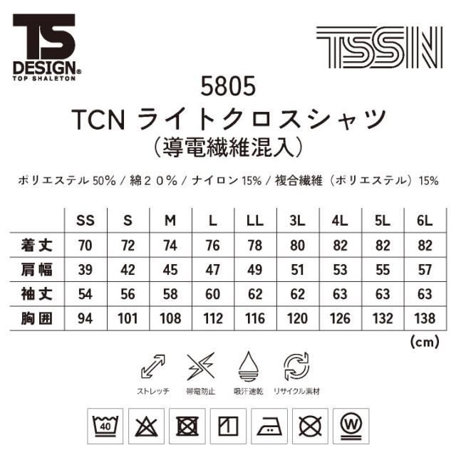 5805 TS DESIGN 長袖シャツ 春夏 秋冬 工事現場 建設業 農作業 ガーデニング アウトドア おすすめ 制服 人気 SS S M L LL